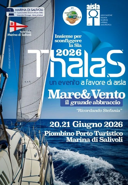 La Veleggiata Thalas “Mare e vento, il grande abbraccio - Ricordando Stefania” è un evento solidale a favore di AISLA (Associazione Italiana Sclerosi Laterale Amiotrofica), organizzato dai volontari AISLA Piombino insieme allo Yacht Club Marina di Salivoli e al porto turistico Marina di Salivoli. Si tratta di una veleggiata in flottiglia non competitiva, gratuita e aperta a tutte le unità, a vela e a motore. Una giornata in mare che unisce partecipazione, condivisione e sostegno concreto.